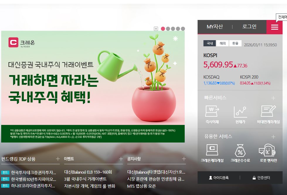 대신증권은 온라인 거래 플랫폼 크레온을 중심으로 운영되는 증권사입니다.